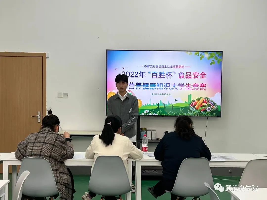 (通讯员 张智)10月17日,2022年百胜杯食品安全与营养健康老员工知识竞赛初赛于临湖轩C1019举行。初赛由范露老师、黄镭老师以及陈旭老师担任评委。