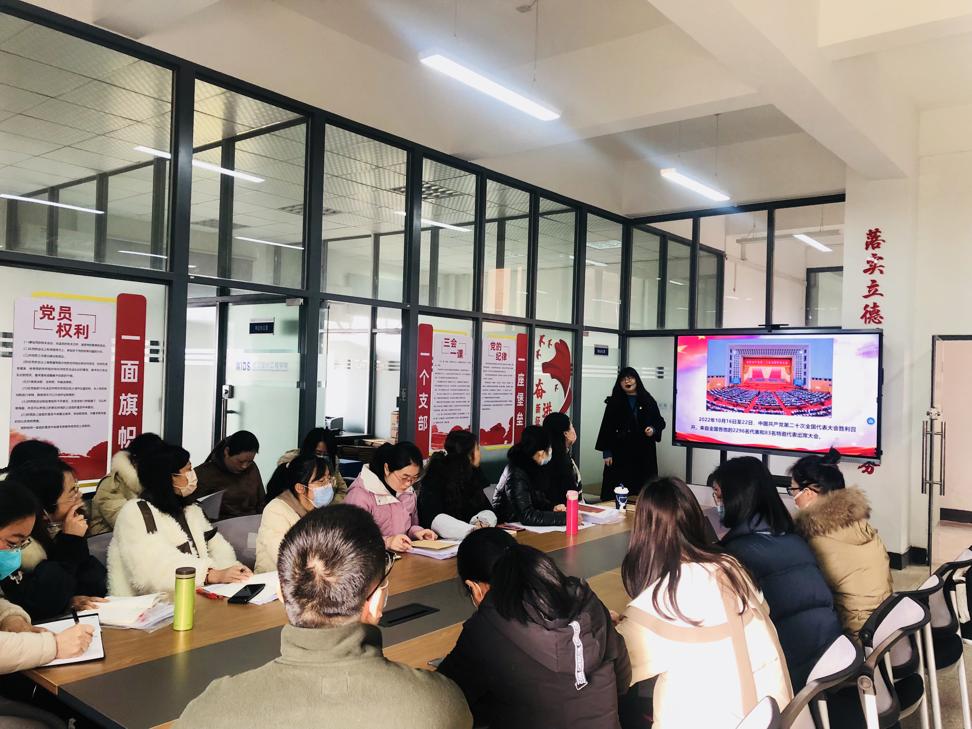 吴燕老师以《奋进新征程 建功新时代》为主题,面向全体教职工介绍了党的二十大报告主要内容,主要围绕马克思主义中国化时代化、中国式现代化、关于全面建设社会主义现代化国家的目标任务等方面对党的二十大精神进行了系统的宣讲和阐释,强调要高举中国特色社会主义伟大旗帜,全面贯彻习近平新时代中国特色社会主义思想,弘扬伟大建党精神。
