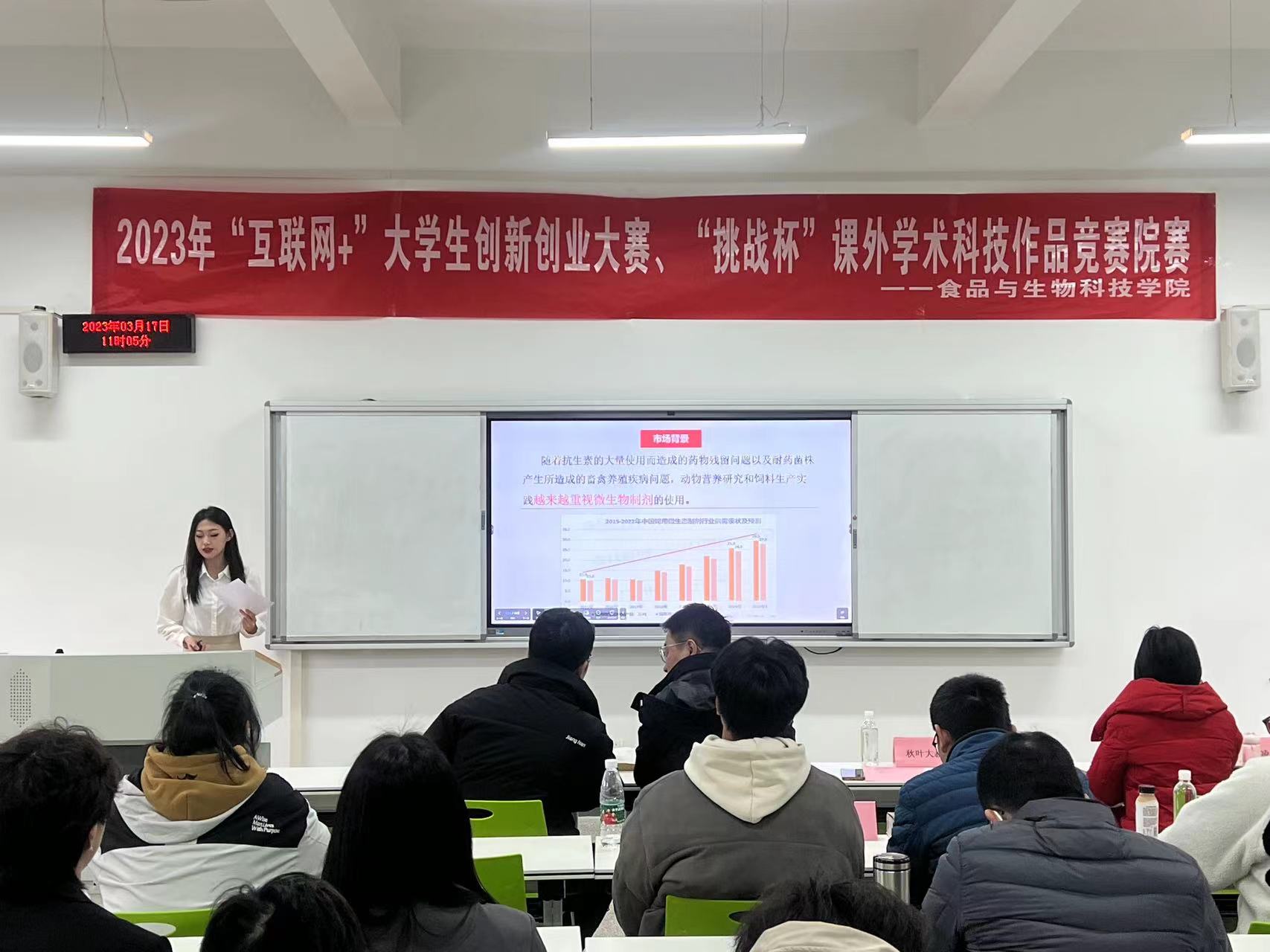 自2023年3月启动“互联网+”、“挑战杯”动员工作以来,经组织动员、系部宣传、选拔推荐等多个环节,共遴选出21件作品进入院内选拔赛。院赛采取作品书面评审、汇报答辩相结合方式进行。各参赛团队结合作品对项目背景、技术方案、创新点、可行性、成果应用、商业模式等方面进行展示汇报,评审组紧扣作品评分要点进行综合评议,为选手进一步优化参赛作品提供了重要参考。