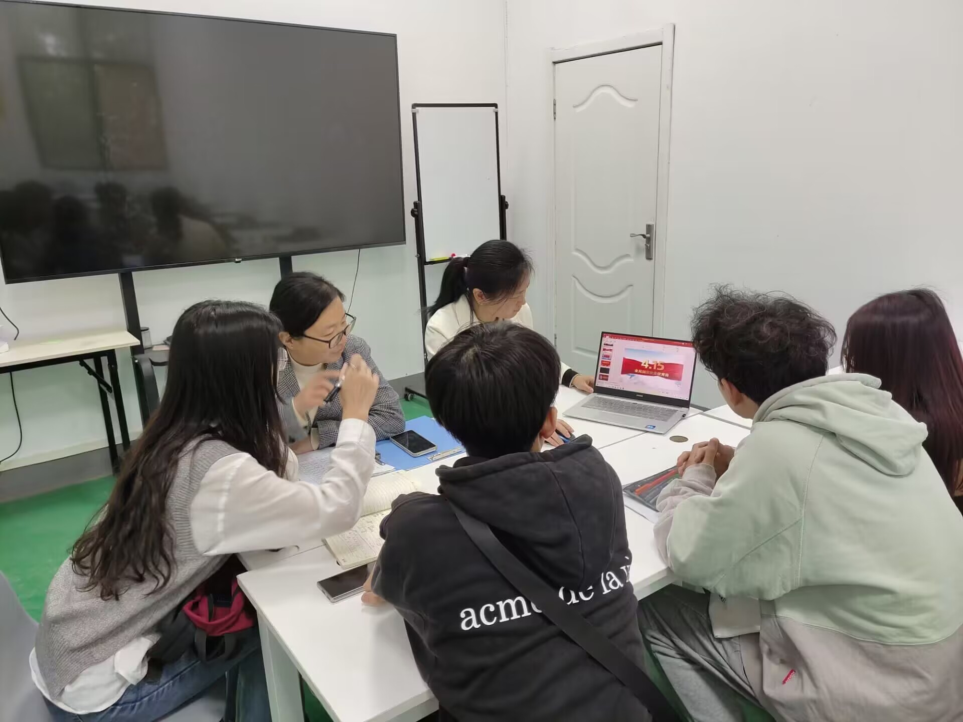 观看《2023年全民国家安全教育日宣传动画》《看不见的风景》以及《高校师生同上一堂网络安全课》等三个视频,分别了解国家安全人身安全、网络诈骗等相关知识。针对视频内容有进行有奖竞答抢答环节,同学们积极举手踊跃回答问题,氛围活跃,在学习到安全知识的同时促进了不同年级之间交流,互相学习,共同进步。班会最后,以小组为单位设计一张安全教育主题海报,辅导员龚婉怡也参与到涂鸦创作中,全员在轻松和谐的氛围中完成一幅幅精美的海报。