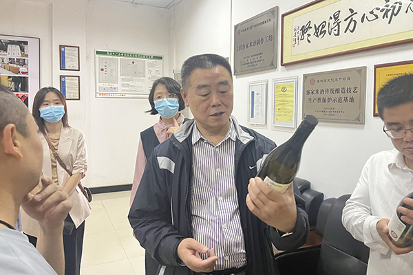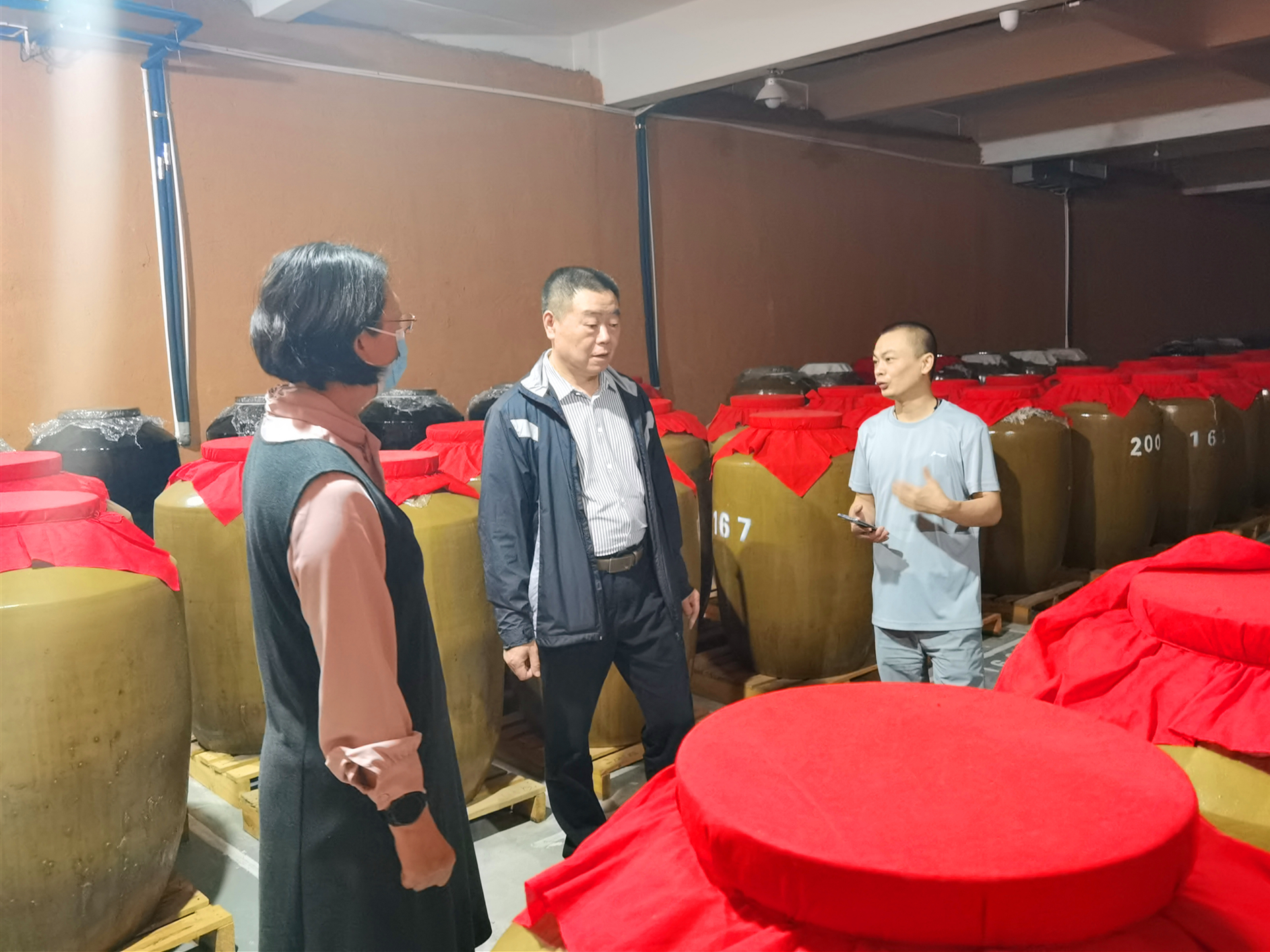 龚少平一行参观员工企业江西阿莲食品有限公酿酒车间。