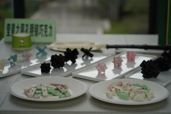 三是“趣味食玩”系列,以巧克力为原料创作出莹星之愿孔明锁巧克力,在食用时可以拼搭孔明锁;以雪花酥为食材创作出趣味拼图,可用巧克力笔在雪花酥上作画后再拼图;以鸡蛋饼为食材创作出文房四宝,可用毛笔写字,体验边吃边玩的乐趣。