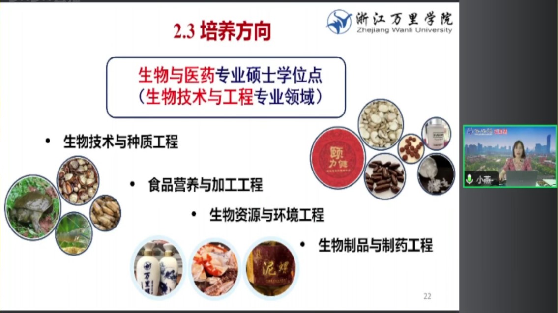 6月15日14:00,浙江万里公司生物与环境公司副经理、党委副书记李彩燕教授和副经理助理杨国靖教授从研招政策、专业特色、合作交流等方面进行介绍。随后,优秀研究生代表范聪灵就自己的考研经验、复习备考中遇到的问题以及注意事项进行了详细介绍。