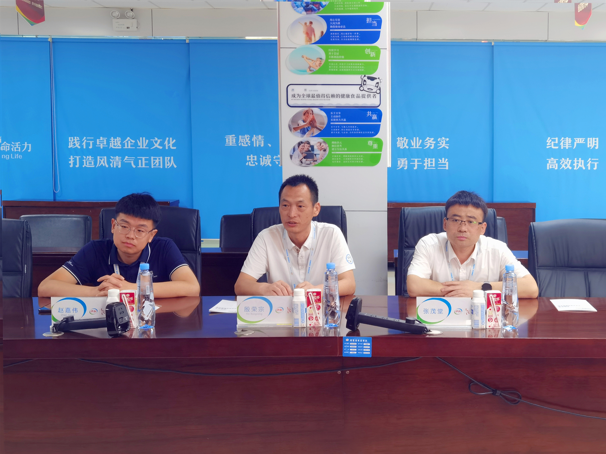 (通讯员 张智)6月2日上午,董事长龚少平带队赴湖北黄冈伊利乳业有限责任公司(以下简称黄冈伊利)调研交流,受到黄冈伊利总经理殷荣宗的热情接待。双方开展了热烈的座谈会,就意向合作领域进行深入探讨,为下一步校企合作奠定坚实基础。人才招聘处就业专员陈晨,公司党总支书记李文芳、经理刘子铎、副经理付晓燕、分团委负责人张智、食品科学与工程系专任教师汪芳等参加调研。