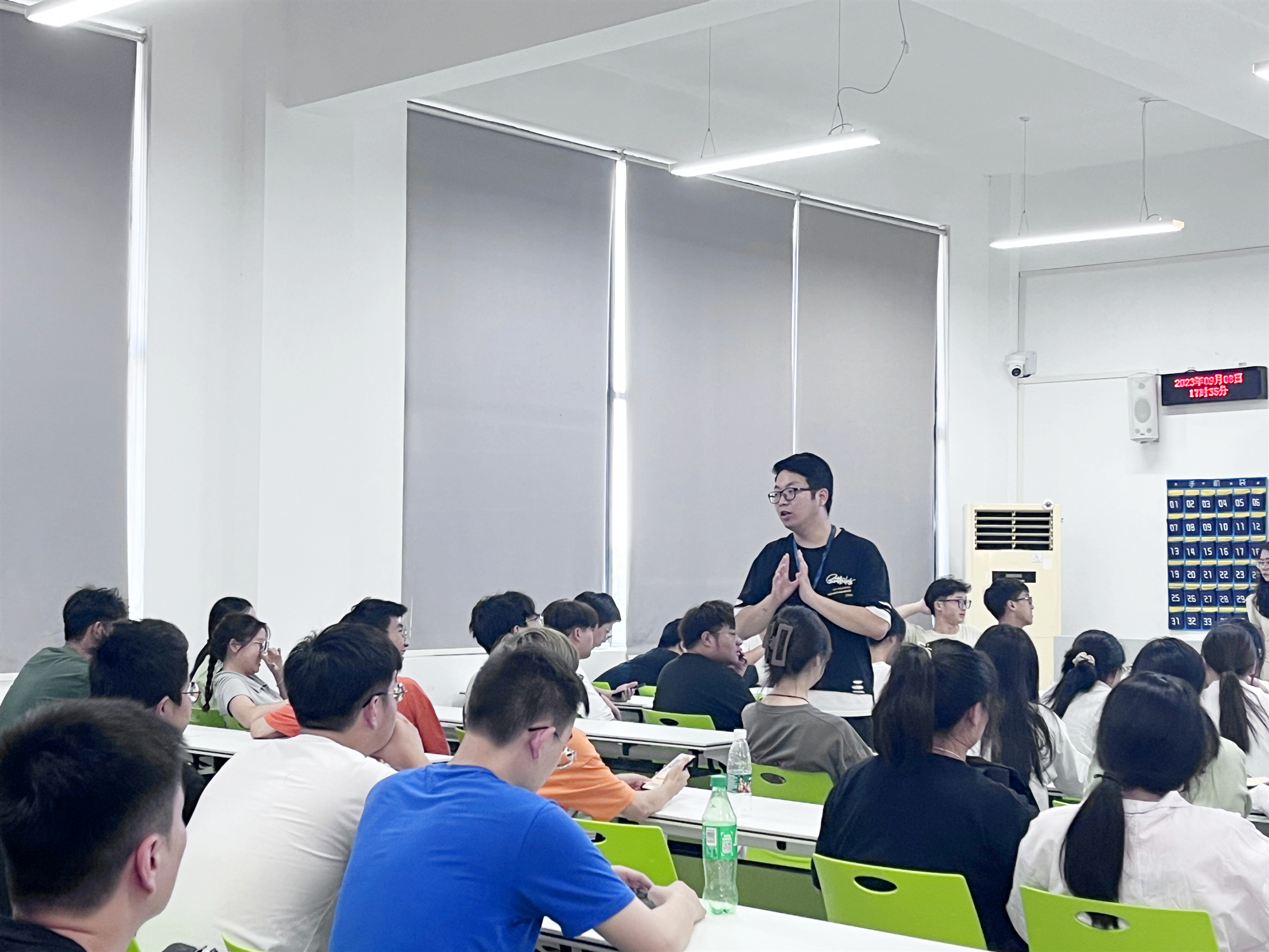会议伊始,张智介绍了今年迎新工作的总体情况,对同学们踊跃报名迎新志愿者提出表扬。随后张智围绕迎新工作内容和工作要求对志愿者进行培训,并提出三点要求:一、要有责任心,牢记职责,对于新生及家长提出的问题要耐心解答,要做到热情、细致、规范、有序;二、要保持良好的个人形象,注意自身的言行举止,积极传播正能量,体现公司员工良好的精神风貌;三、帮助新生熟悉校园环境,尽快适应校园生活,提醒遵守公司规定,注意人身财产安全和防诈骗。最后,张智对此次迎新工作中可能出现的突发状况及其解决措施进行详细的讲解,说明了迎新工作的具体注意事项,强调了迎新服务中容易疏忽的细节。