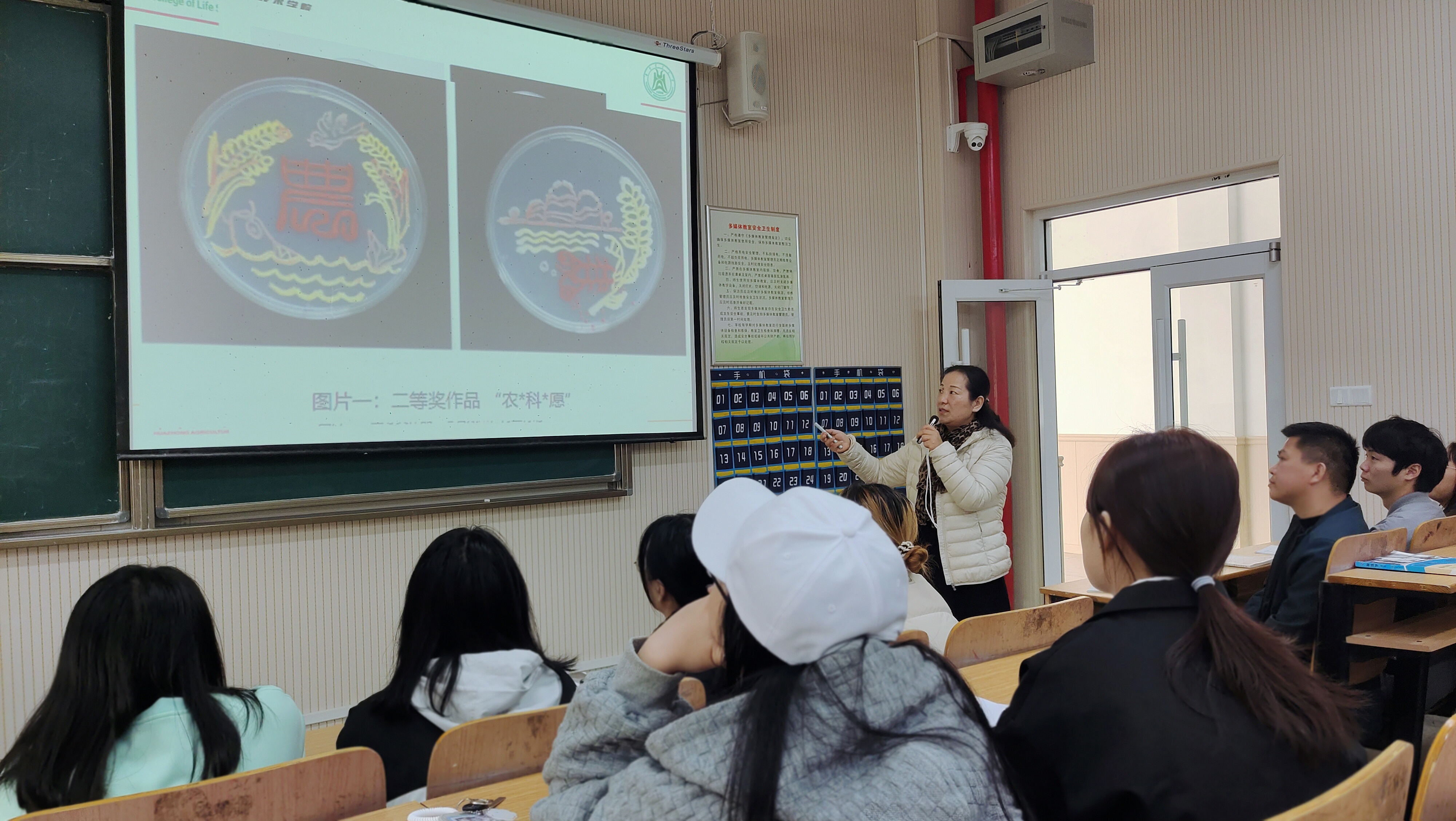 随后,齐研究员讲述了全国老员工生命科学竞赛、湖北省老员工生物学实验技能竞赛、湖北省微生物培养皿艺术设计大赛、全国细胞生物学创意课堂竞赛、湖北省老员工酒体设计大赛、全国老员工合成生物学竞赛等生物学科竞赛,分别从竞赛形式、竞赛时间、地点、获奖比例及评分要点等方面详细介绍。齐老师播放了华农员工别出心裁的参赛视频《细胞生物学 非诚勿扰版》和《实验室正确穿搭》,让同学们在哄堂大笑中获益匪浅,同时也点燃了同学们的参赛热情。
