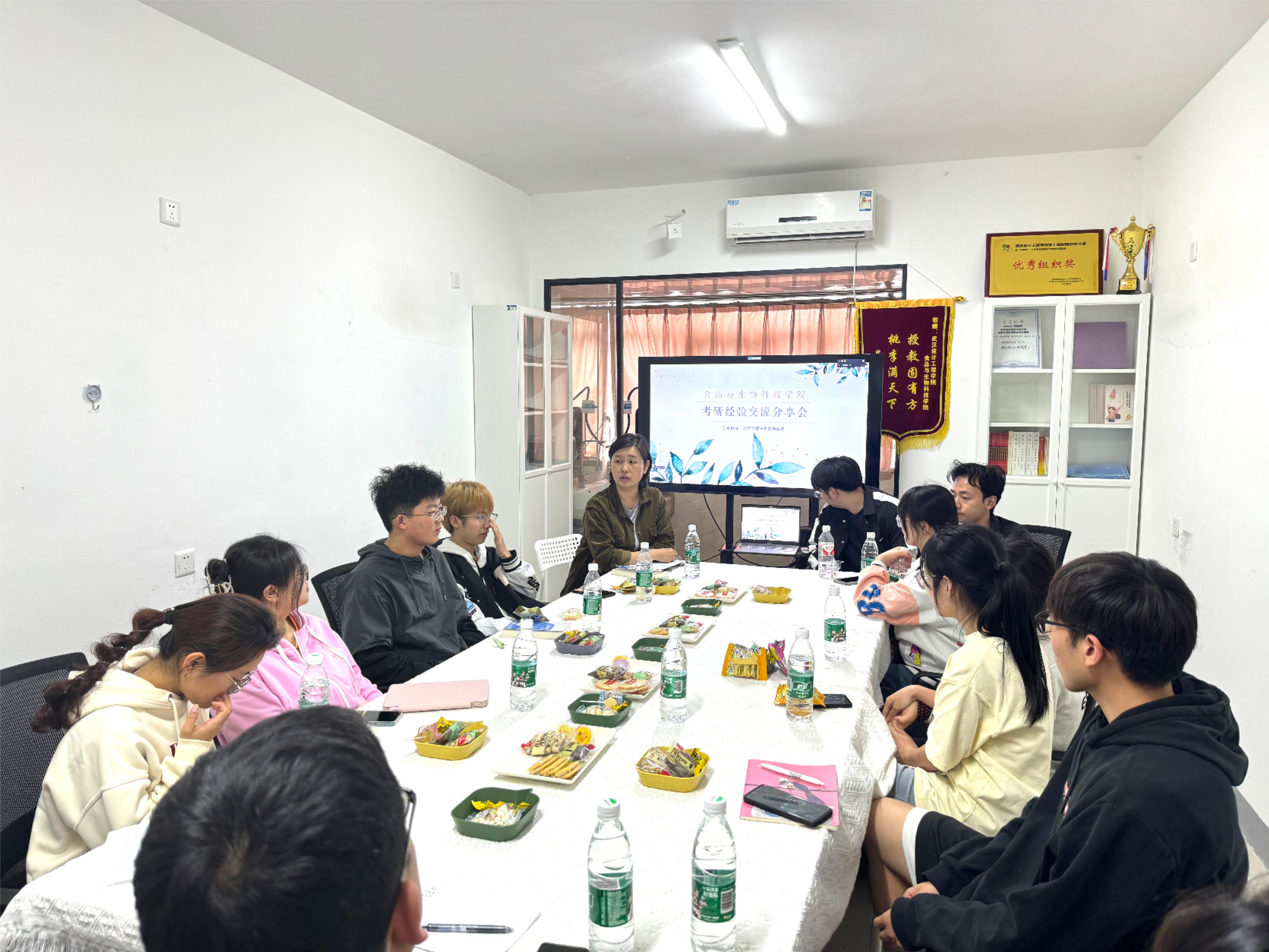 交流会上,2024届学长学姐首先分享了他们的备考经历和感悟。叶森今年考上了湖北大学研究生,他在分享中谈到,第一遍复习中,可以借助网络上的资源,多看课程教学视频,理解领悟为主,不要急于做考研相关真题。邓祥宜老师表示赞同,他补充道,所谓“练武不练功,到老一场空”,考研如习武练功,在复习过程中最重要的是将知识点理解、融会贯通,练就扎实的基本功,然后再训练答题技巧。