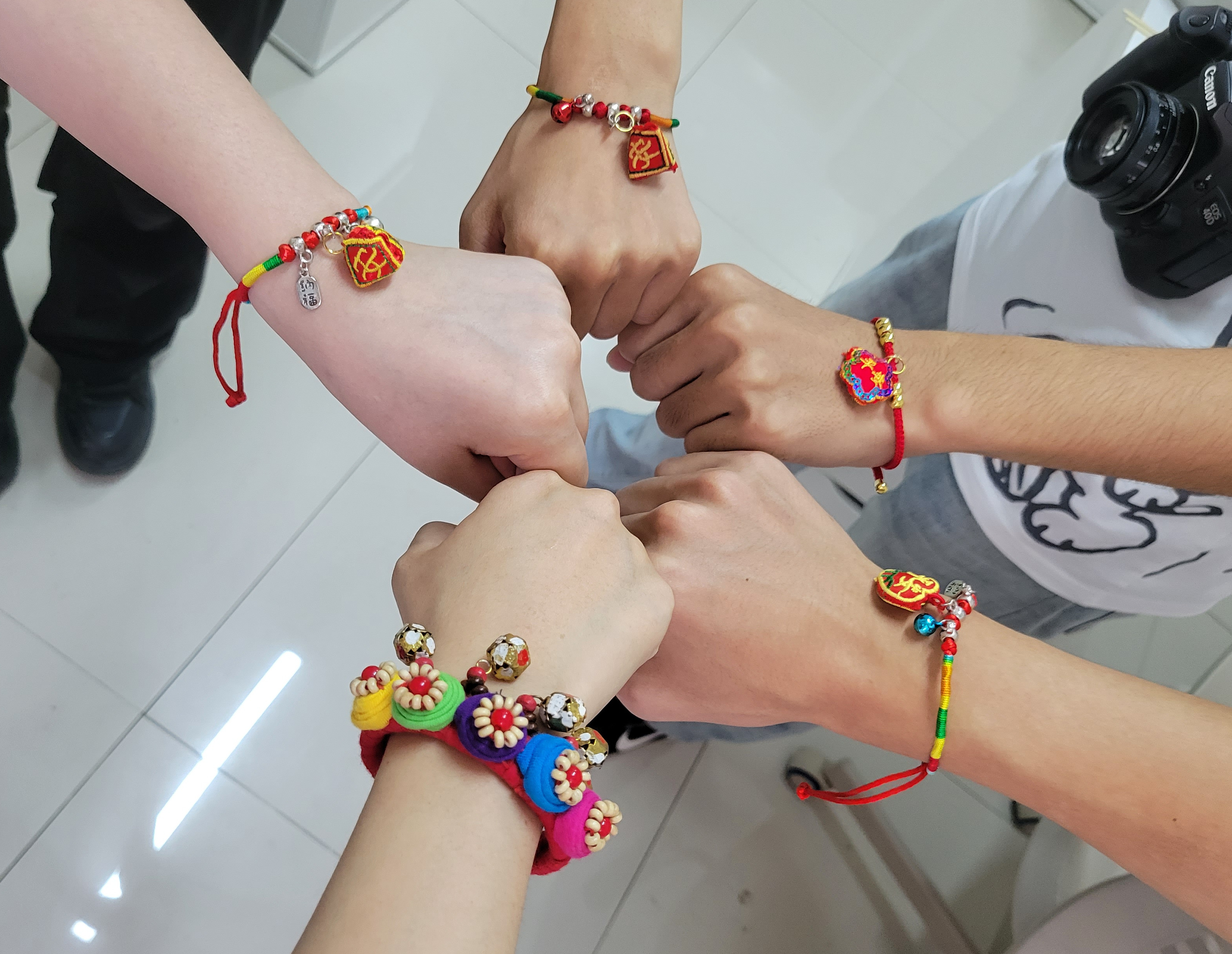 活动伊始,主持人陈浩然向在场同学讲述了端午节的由来和深厚的历史文化内涵。随后通过提问的方式,与在场的同学们进行互动。当有同学能够回答出关于端午节习俗时,便会获得一条象征着吉祥好运的五彩绳作为奖励。来自广西的少数民族同学也给大家介绍了家乡独特的“沐兰汤”习俗,在端午这天,家里人会采集新鲜艾草加水熬制,用来擦拭身体,清洁身体的同时也寓意驱除病邪,祈求健康平安。