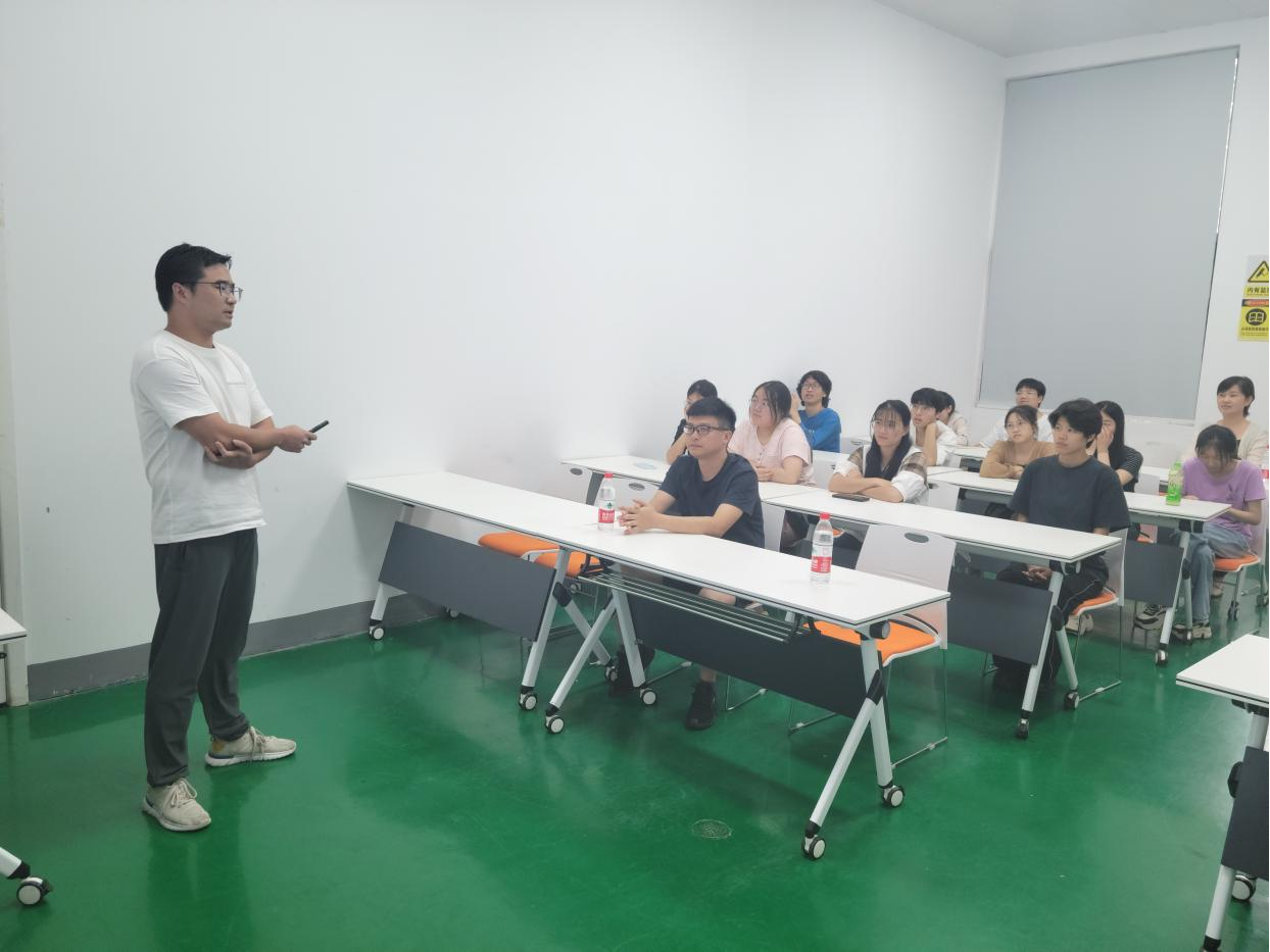如果说彭进明老师的分享是学术殿堂的指引,那么刘盟梦学长的故事则是另一番风景。2017年他获得中国海洋大学硕士学位,在工作多年之后毅然选择了创业的道路,这份勇气与决心,让在场的每一个人都为之动容。刘盟梦学长用亲身经历告诉大家,人生没有固定的轨迹,关键在于勇敢追求与不懈努力。他的成功故事,如同一股清泉,滋润了同学们的心田,激发了他们对未来无限可能的想象与追求。