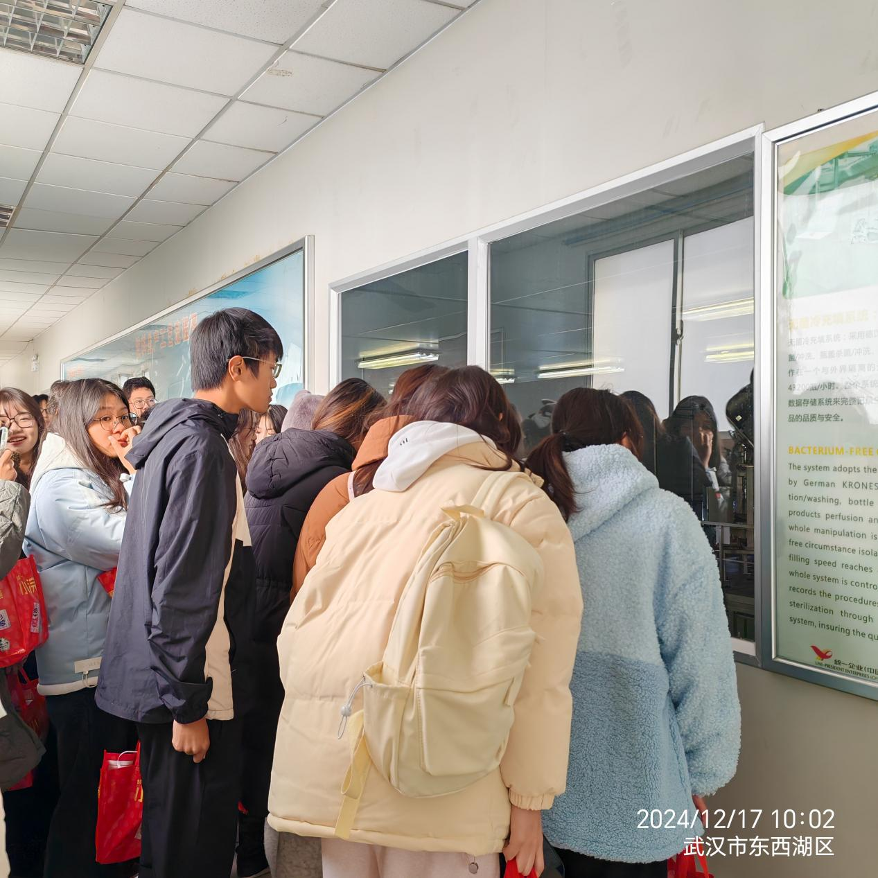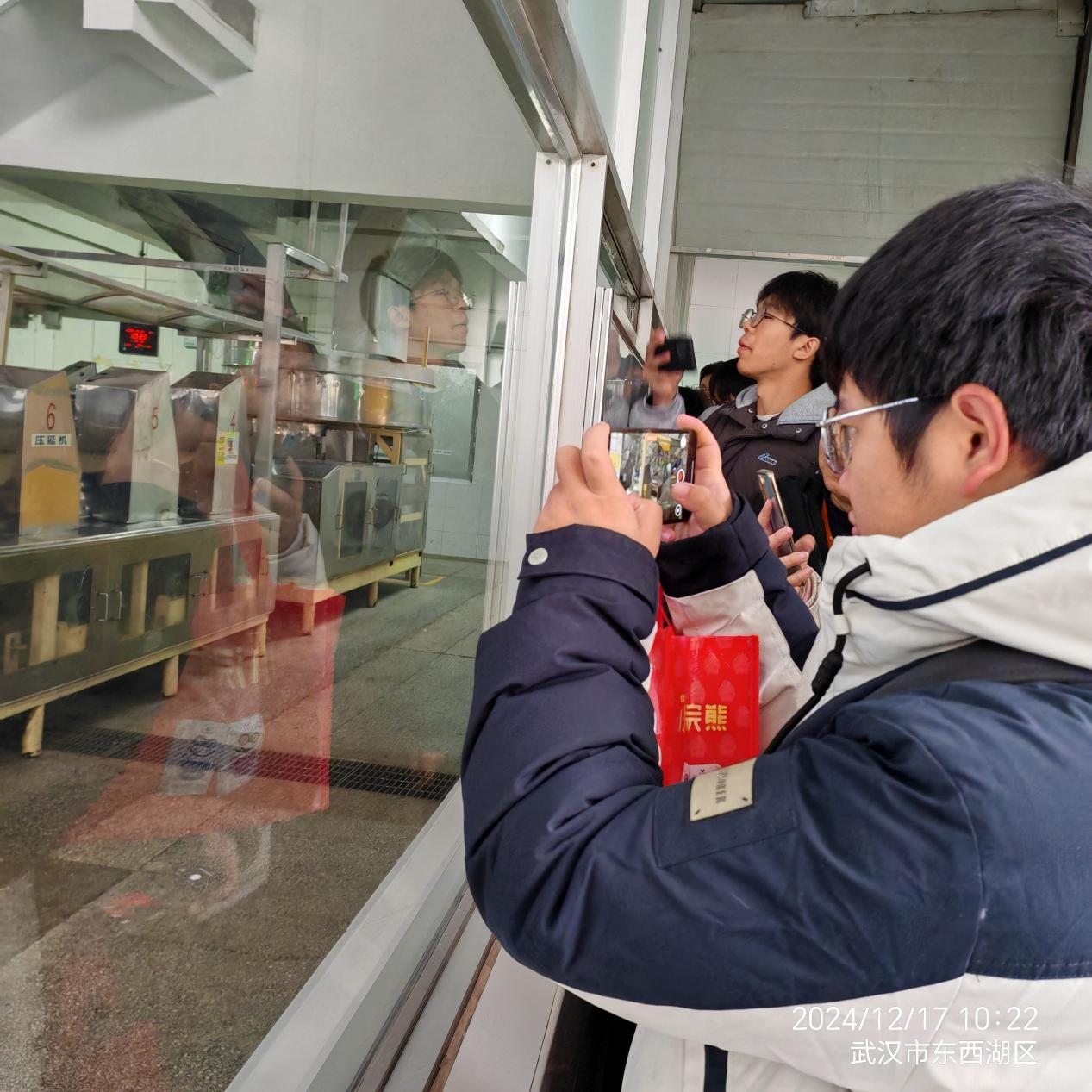本网讯(通讯员 汪芳)为了加深新生对本专业知识体系的理解以及其在实际工作中的应用,明确大学期间的学习目标和重点,同时了解不同岗位的工作内容和职责,以便提前规划职业生涯,公司于2024年12月17日组织了由汪芳、李军胜老师带队的2024级食品科学与工程专业及食品质量与安全专业的员工,前往武汉统一食品有限公司进行企业认知实习。