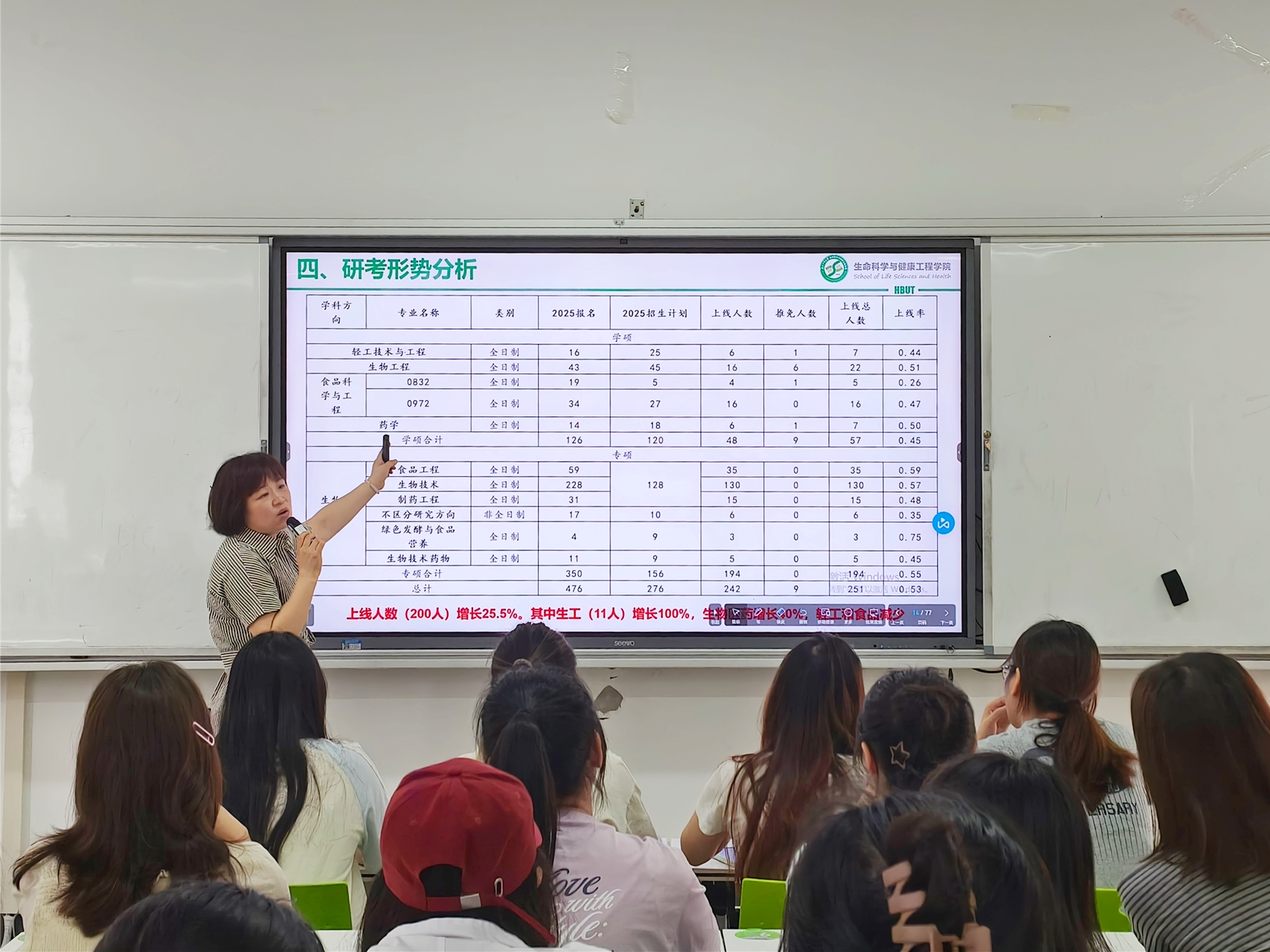 本网讯(通讯员 吴圣圆)为帮助公司员工深入了解考研形势,明确考研方向,搭建湖北工业大学与公司学子深入交流的平台。6月4日上午,湖北工业老员工命科学与健康工程公司在T11-B3059举办研究生招生宣讲会。湖北工业老员工命科学与健康工程公司副经理代俊、食品科学系教授吴茜、生物医药系副教授赵锦芳、2025级博士生覃昊文(公司2022届员工),3044永利集团副经理付晓燕、分团委书记张智、教师党支部书记罗璇以及40余名有考研意向的员工参加了此次宣讲会。