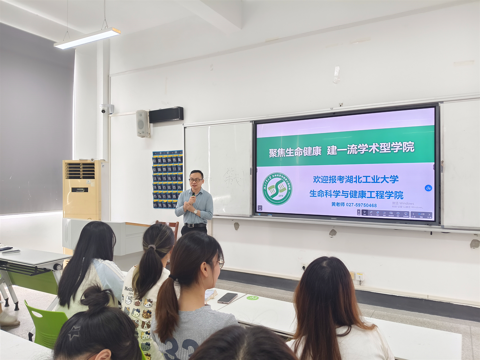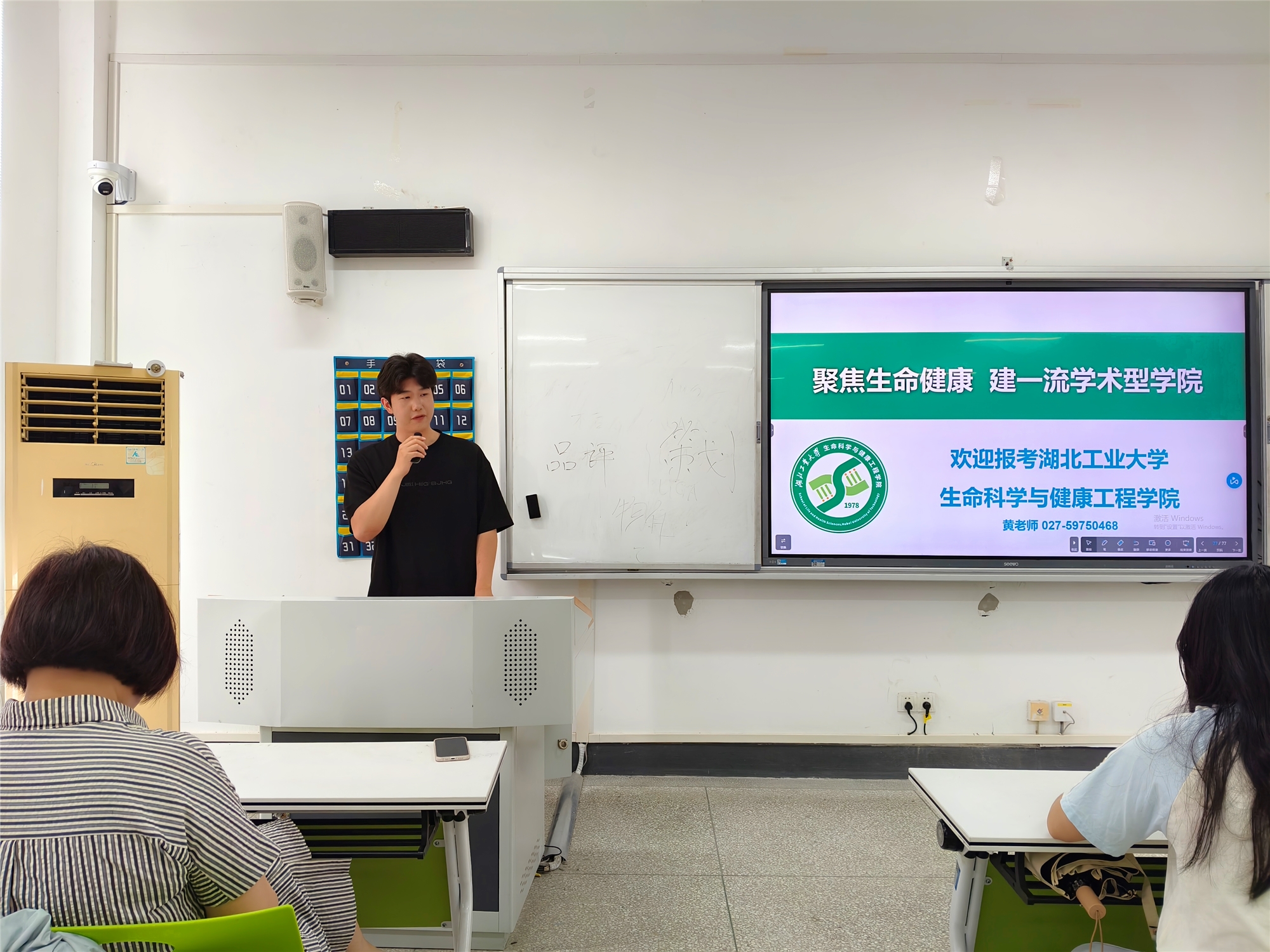 随后,赵锦芳介绍了湖北工业大学的整体概况,包括公司的历史底蕴、团队建设成果、团队力量以及校园文化等。她着重强调了生命科学与健康工程公司在学科发展、人才培养和科研创新等方面的优势,并对科研团队的研究方向进行逐一介绍,深入讲解了导师团队以及公司产品模式,尤其细致介绍了公司各科研团队的研究方向与招生计划的专业分配,帮助同学们精准对接兴趣与专业,鼓励同学们积极报考。