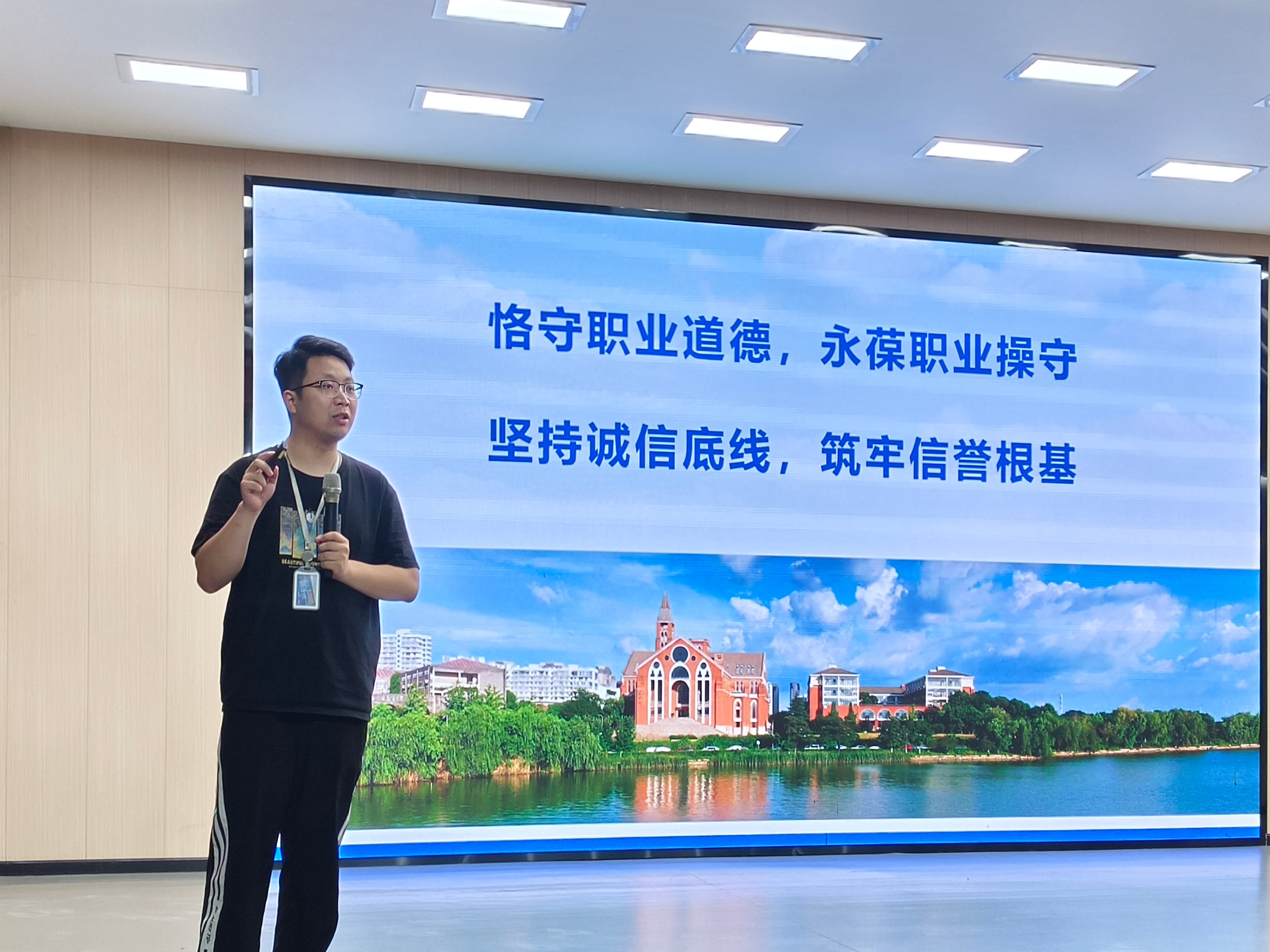 紧接着,张智为同学们悉心讲授了实习期间的沟通技巧、职业礼仪、安全防护知识,确保同学们在实习过程中既能够顺利开展工作又保障自身安全。他强调,毕业实习不仅是提升专业技能的绝佳机会,更是锻炼综合素质、增强就业竞争力的关键时期;希望同学们能够珍惜实习机会,端正实习态度,严格遵守实习纪律,努力在实习中提升自己。