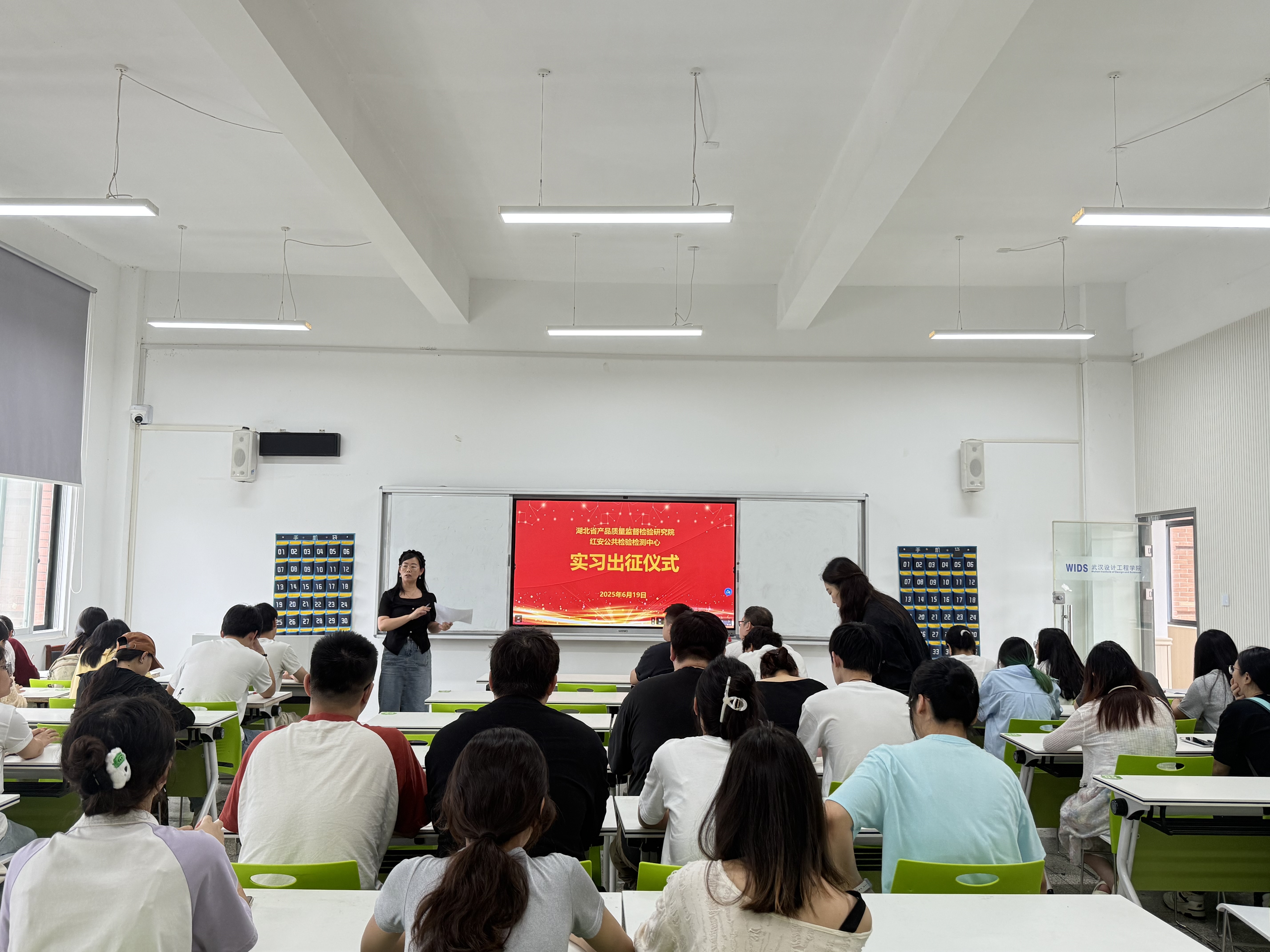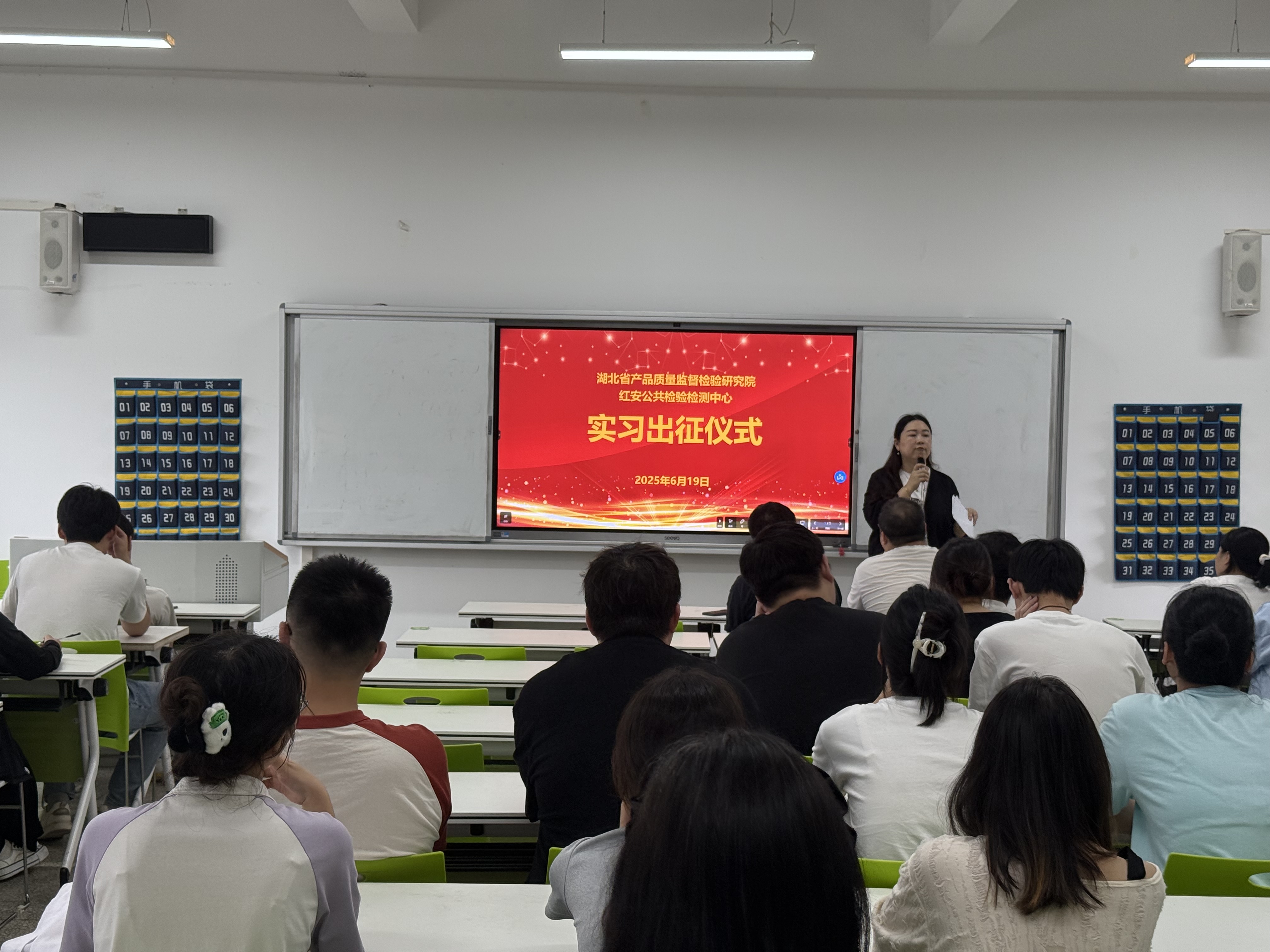 本网讯(通讯员 王静)为推动2026届毕业生理论与实践结合,顺利开启实习之旅,6月19日,3044永利集团举办2026届毕业生赴湖北省产品质量监督检验研究院、红安公共检验检测中心实习出征仪式。此次出征仪式由公司副经理付晓燕主持,食品质量与安全系主任罗帷、实验教学中心主任翟淑红、辅导员张智参加。暑假期间,公司选派30名员工赴湖北省产品质量监督检验研究院开展毕业实习,23名员工赴红安公共检验检测中心开展实习。