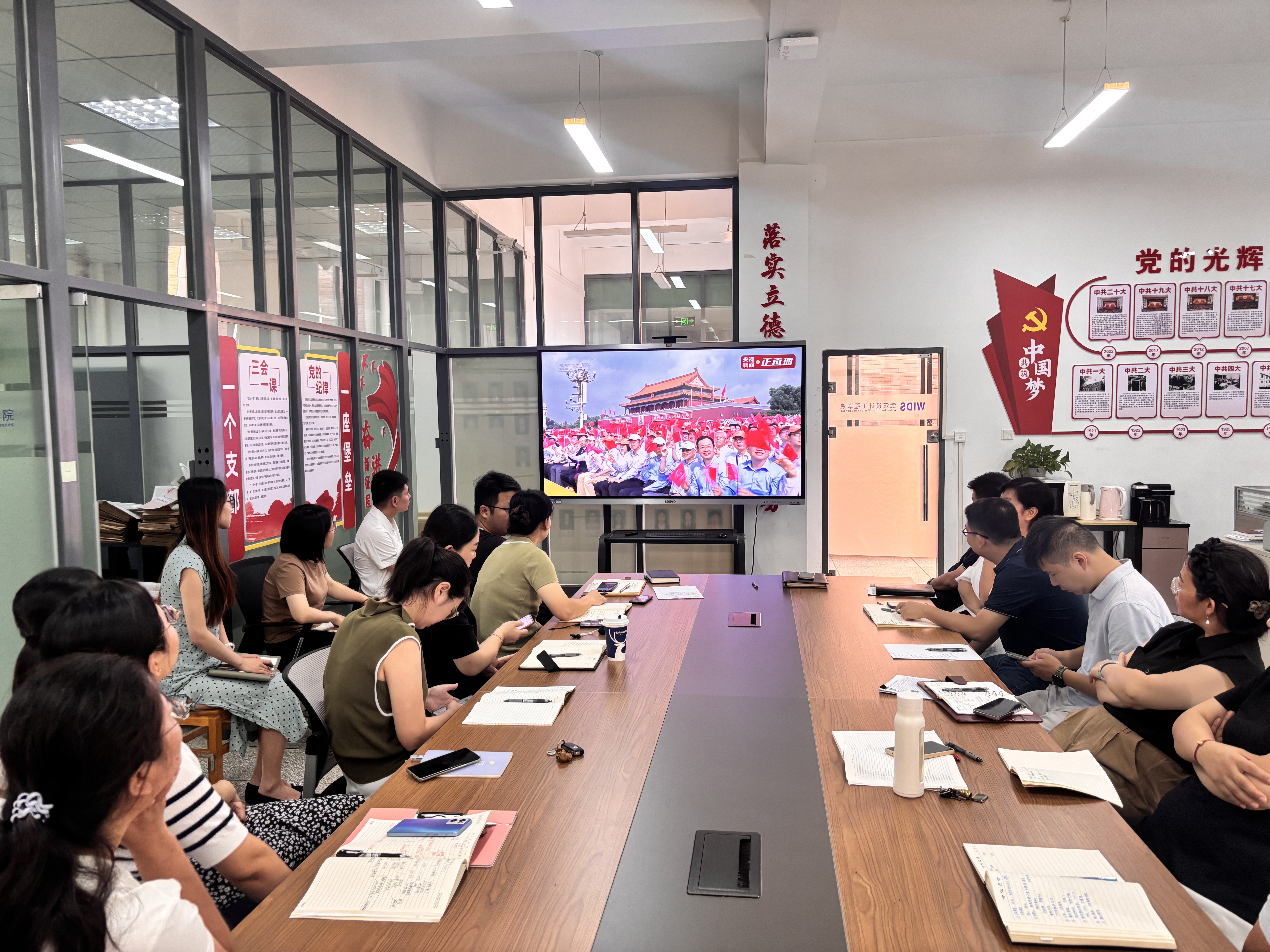 本网讯(通讯员 张茹月)9月3日上午,纪念中国人民抗日战争暨世界反法西斯战争胜利80周年大会在北京天安门广场隆重举行。3044永利集团组织公司全体教职工集中观看了阅兵仪式直播,共同见证这一历史性时刻。