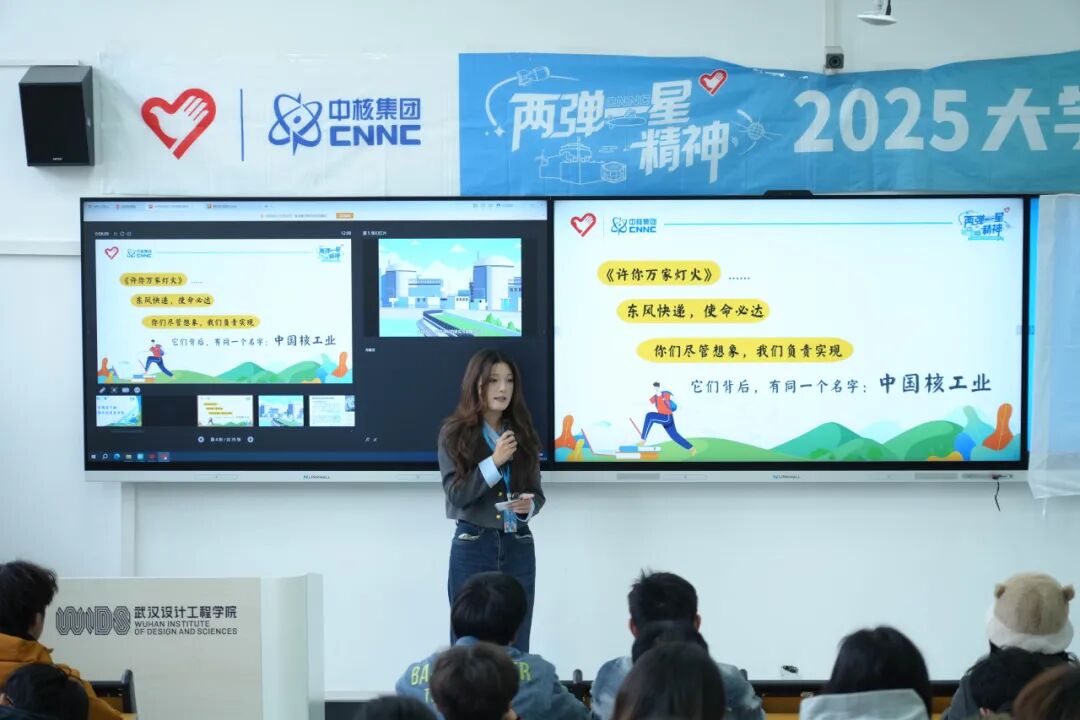宣讲过程中,高雨洁重点讲述了邓稼先、王淦昌等科学家的感人事迹,再现了中国核事业从无到有、从弱到强的艰辛历程。“他们在艰苦的条件下,用算盘演算数据,用双手搭建实验室,将个人理想融入国家发展。”真实的史料与质朴的讲述,让“两弹一星”精神在同学们心中留下了深刻印记,现场不时响起阵阵掌声。
