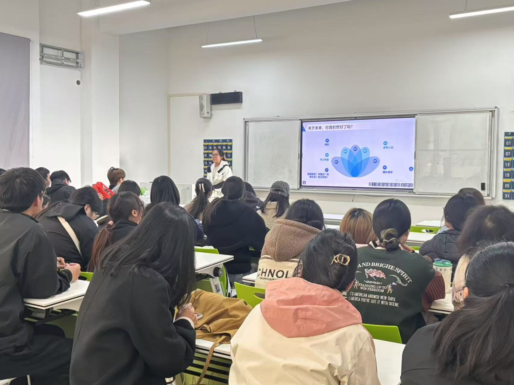 随后的“深思”环节,主持人引导同学们围绕“过去·现在·未来”的时间轴线进行静心沉思。每位同学在特制的“生涯规划纸”上郑重写下自我剖析、当下计划与未来憧憬,从而明确个人发展方向。