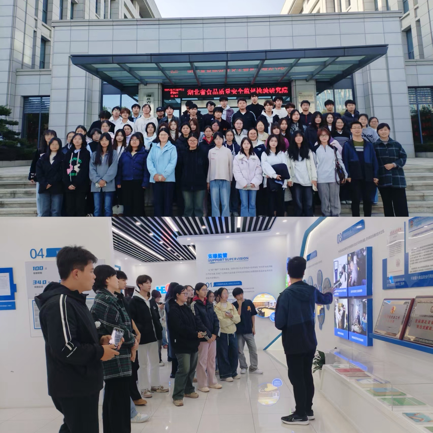 同学们还专程前往湖北省食品质量安全监督检验研究院。在研究院的理化与微生物检测实验室,高精尖的检测设备与科研人员一丝不苟的工作状态,让同学们了解到省级检测机构在食品安全风险监测、市场监督执法中扮演的“安全守门员”角色。通过与专家的交流,同学们对食品质检行业的职业要求、技术发展及未来就业方向有了更为清晰的认知,使命感与责任感油然而生。