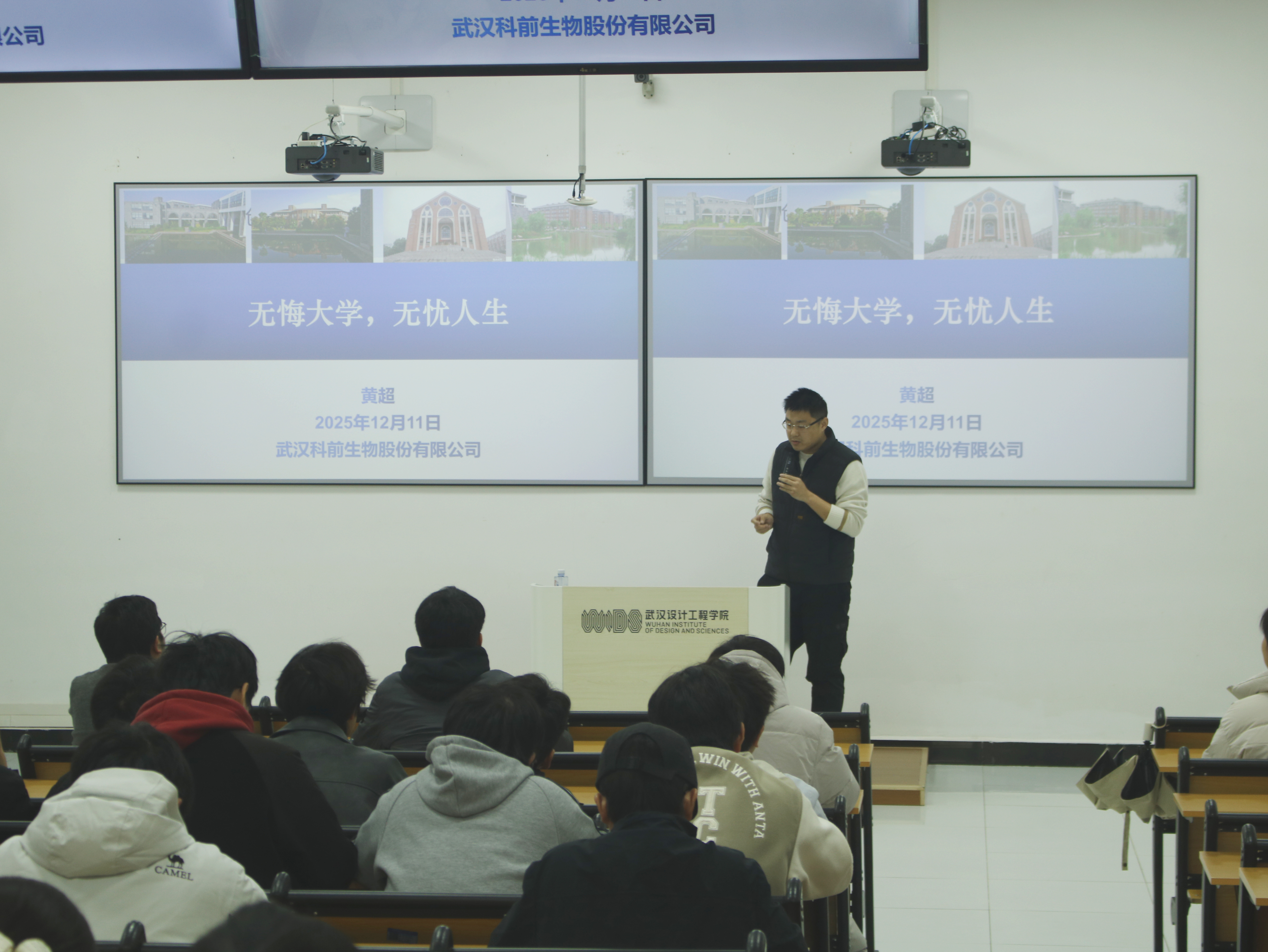 本网讯(通讯员 马冲 黄镘伊)岁末暖冬传经验,朋辈同心促成长。2025年12月11日在红安校区H1-1059公司 “升学就业” 朋辈分享会顺利开展。活动特别邀请黄超、顾农飞、张腾三位优秀员工,结合自身深耕科研、职场历练、学历逆袭的成长历程,为在校学子送上满满的升学就业 “实战指南”。