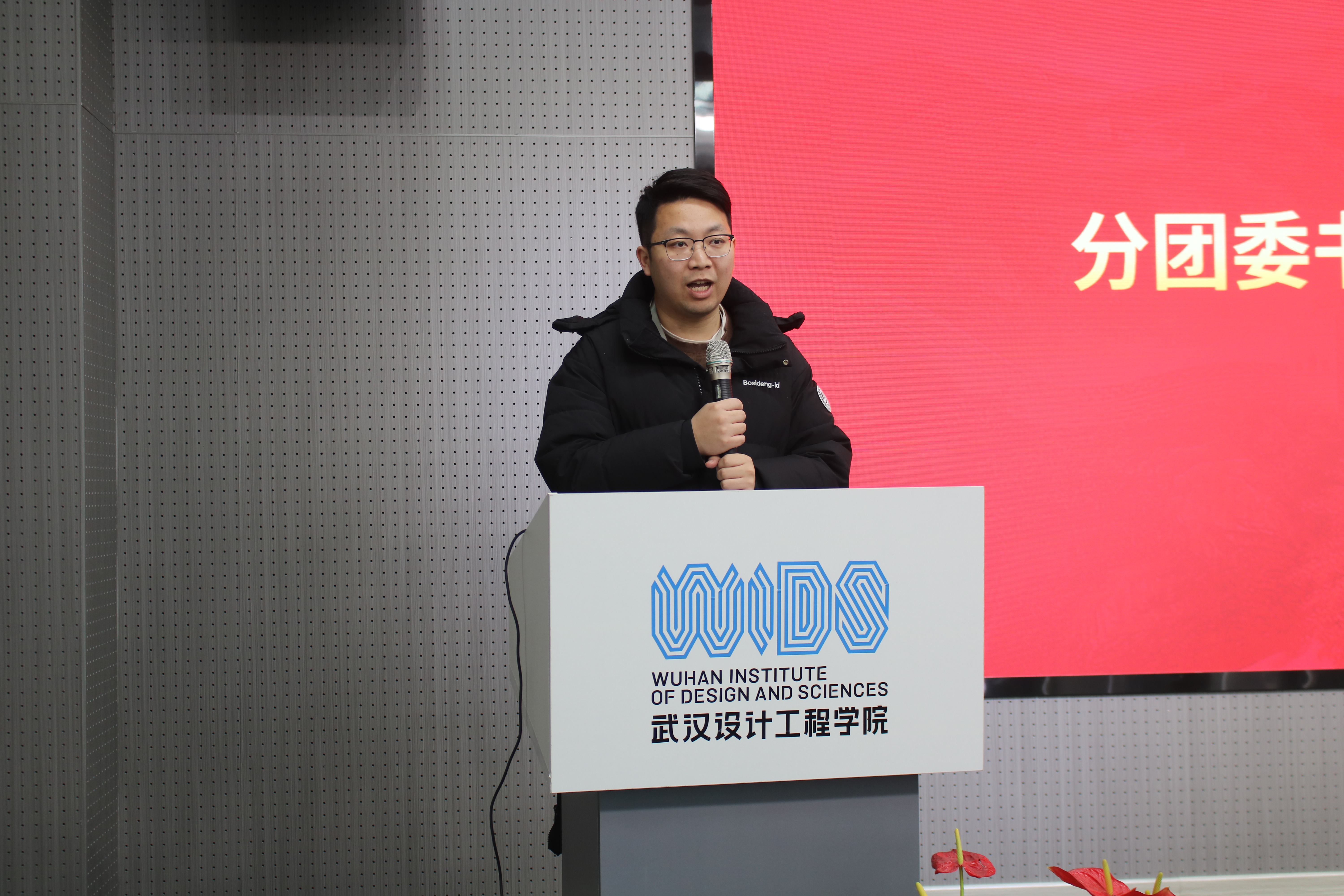 大会第三项,分团委书记张智发言。张智结合员工组织的使命初心与过往工作实践,向全体成员分享工作经验、传递殷切嘱托。他鼓励大家以饱满的热情投入员工工作,在服务同学的过程中锤炼过硬本领,在助力公司发展的实践中实现自我成长,用责任与担当书写青春答卷。