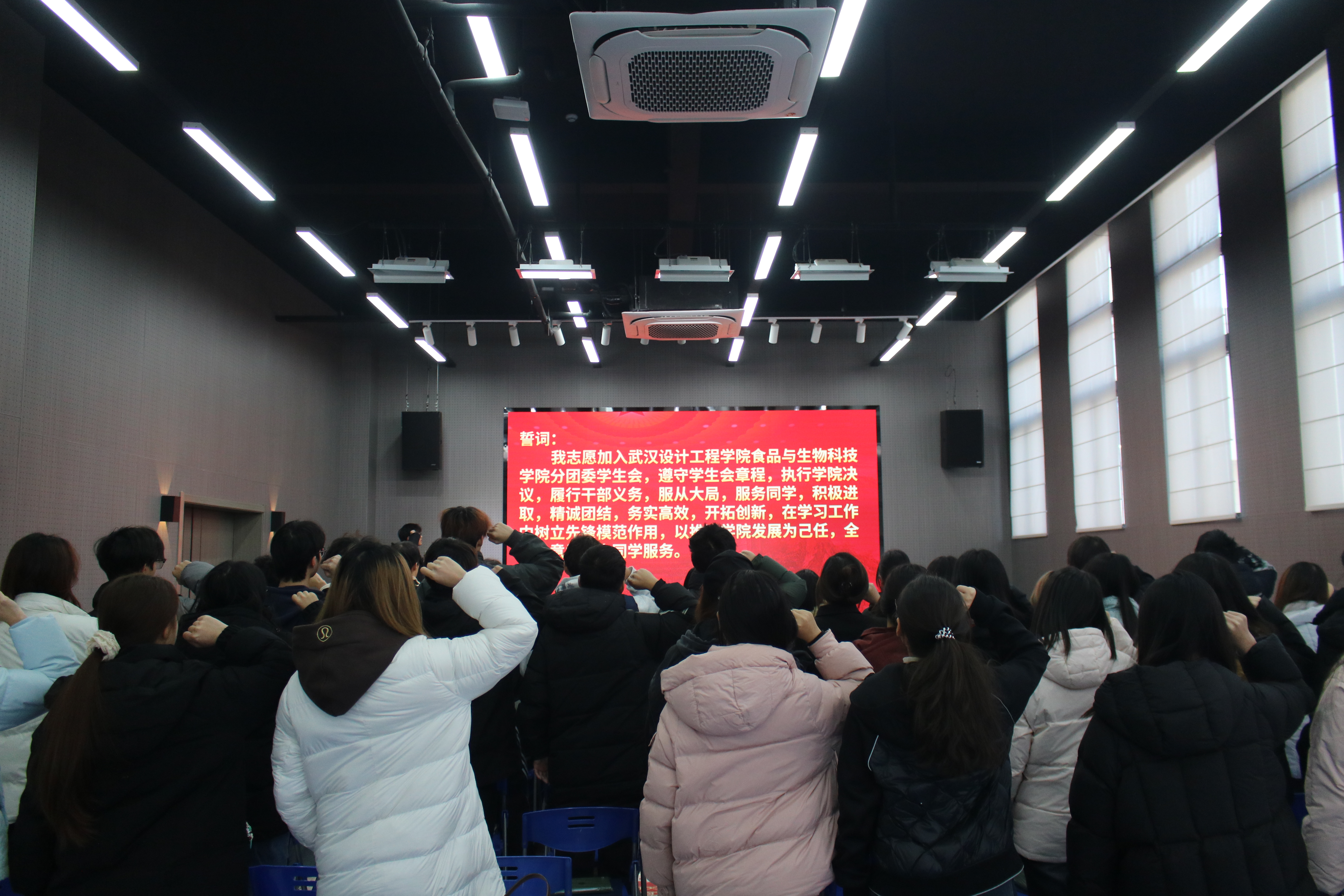 大会第五项,分团委员工会集体成员宣誓。全体成员起身肃立,高举右拳,在领誓人罗前锦的带领下庄严宣誓:“我志愿加入3044永利集团分团委员工会,遵守员工会章程,执行公司决议,履行干部义务,服从大局,服务同学,积极进取,精诚团结,务实高效,开拓创新,在学习工作中树立先锋模范作用,以推进公司发展为己任,全心全意为广大同学服务。”铿锵有力的誓言响彻会场,字字句句彰显着青年学子的初心使命与坚定决心。