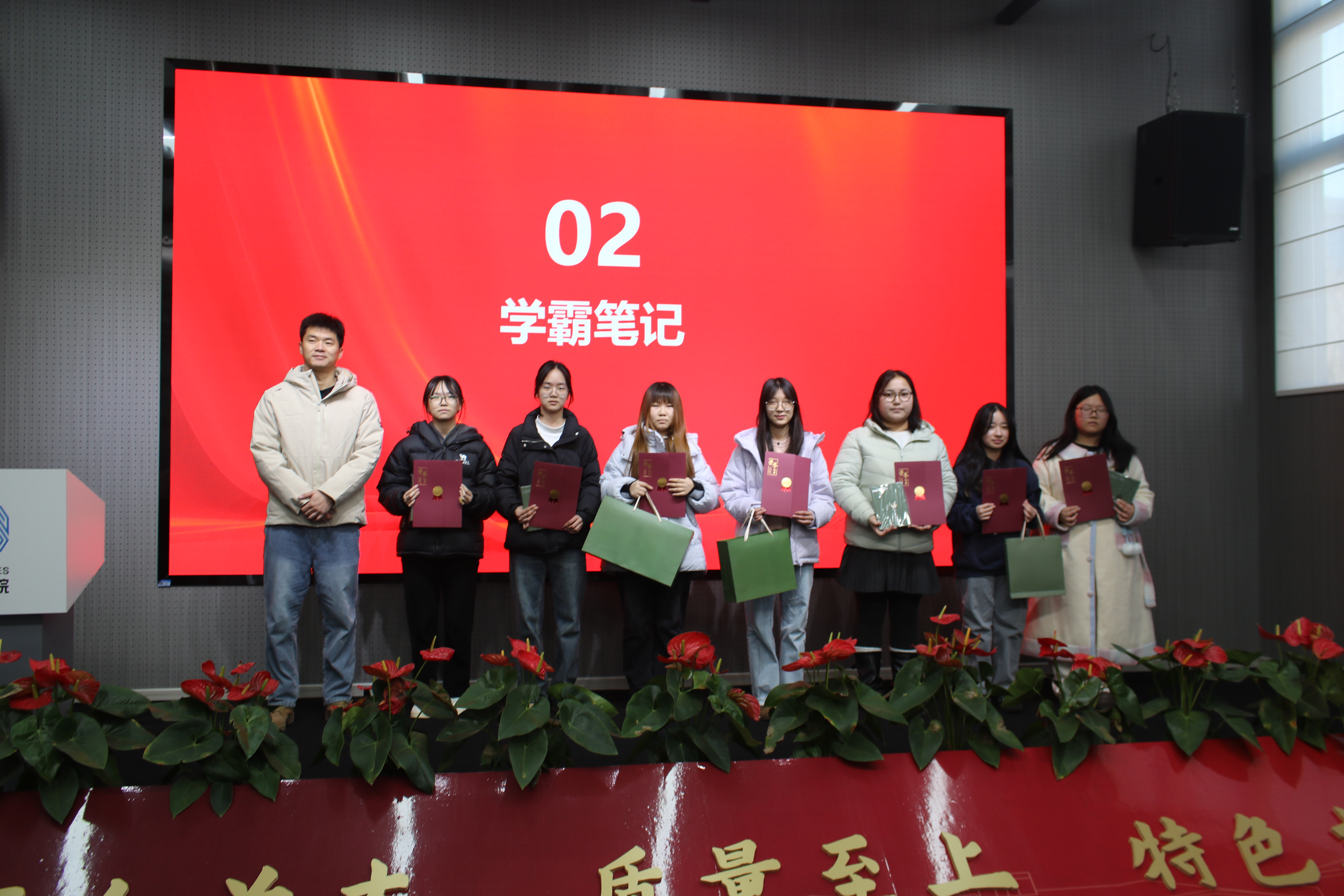 学霸笔记评选中,同学们以笔墨凝智慧,将课堂知识系统化梳理、碎片化内容逻辑化整合,既展现了对知识的敬畏与钻研,更沉淀了科学高效的学习方法。经严格评审,评选出一等奖1名、二等奖1名、三等奖1名、优秀奖5名。党总支副书记何高翔为获奖同学颁奖时强调,优秀笔记是学习态度与思维能力的集中体现,希望全体学子以榜样为镜,在勤动笔、善总结中提升学习实效。