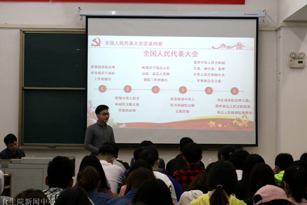 在组织员工党员、入党积极分子学习了两会系列讲话和重点内容后,于4月27日晚在九思3009教室举办了“2018年两会学习总结汇报会”。大会首先通过观看两会视频资料,对两会的重大意义及精神实质等内容做了全面的梳理与讲解,使员工党员及入党积极分子们重温两会精彩内容,学习两会精神。随后又由党员代表张昊宇等八名同志介绍其学习成果,结合自身分别对习近平新时代中国特色社会主义思想、首创精神、社会信用等八个主题进行了深入学习和举例,展现了公司员工党员的理论水平和思想深度,有助于公司全体积极分子们同党员同志们共同进步。