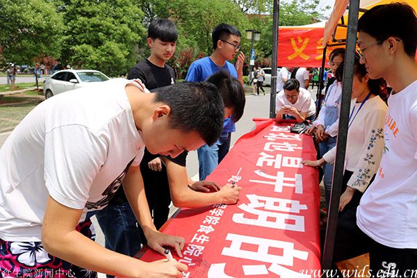 23日12点时,心理部部长肖本勇和成员在人工湖展开一条“心灵开朗的人,面孔也是开朗的”的横幅。给来往的同学宣传心理健康的知识并签名,师生参与踊跃。肖本勇向记者介绍到,“横幅签名参与性强,针对性也很强,很能够让同学们明白老员工心理健康的重要性,今天共有70余名同学签名”。