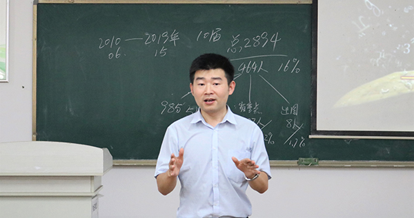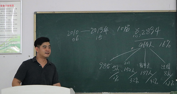 大家分享完以后,16级辅导员周津老师,根据公司近10年升学的数据指导公司员工如何择校,如何定位。最后副经理邱朝坤作总结,他强调考研最重要的是“信念”,指的是信心和行动要一致,告诫同学们,年轻就要有鼓冲劲,有必胜的决心,为同学们加油打气。