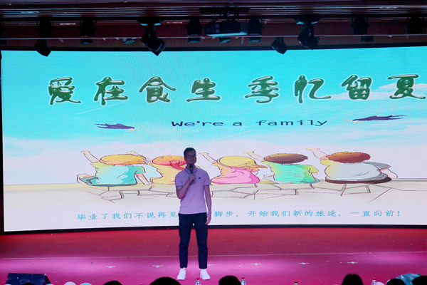 本网讯(乐星宇 徐彩红 付宜萍 方娜)时间如白驹过隙,转眼间又一批优秀的食生学子即将毕业,为欢送毕业生,6月18日19:00公司在小礼堂成功举办以“爱在食生,季忆留夏”为主题的2019届毕业晚会。经理刘子铎、副经理邱朝坤、副经理李文芳,各年级辅导员,毕业班全体班主任与部分任课老师以及全体毕业生参加了此次晚会。