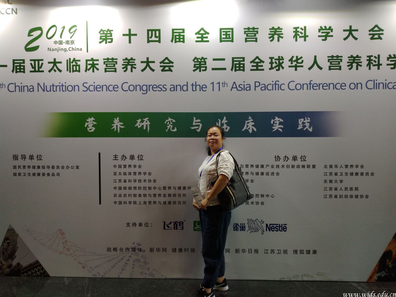 本网讯(通讯员 付晓燕)为了推进 “健康中国”伟大战略,落实国民营养计划(2017-2030)健康目标,促进与亚太地区及国际营养科学的交流和发展,由中国营养学会主办的“第十四届全国营养科学大会暨第十一届亚太临床营养大会、第二届全球华人营养科学家大会”于2019年9月20日-22日在南京召开,公司教师付晓燕、陈旭受邀赴会。