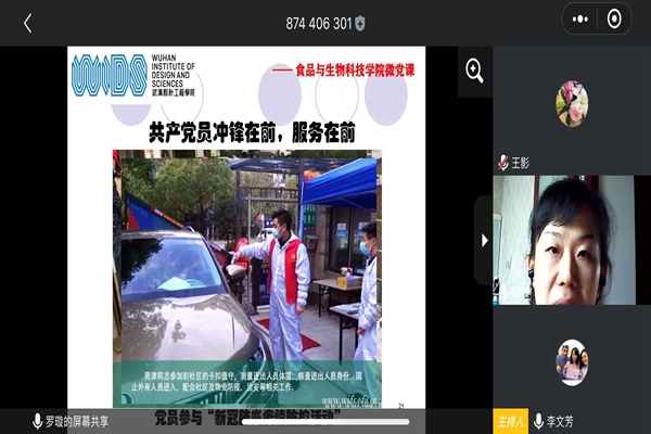 接着,教师支部书记罗璇同志给全体党员教师上了一堂《怀揣教育梦想、做优秀教师党员》的专题微党课。党课内容主要包括以下三个方面:十九大对于教育的论述、优秀高校共产党员事迹、如何做一名优秀党员教师。通过学习优秀党员的抗疫故事,让党员同志坚守初心和使命,为祖国和人民贡献自己的微薄之力。