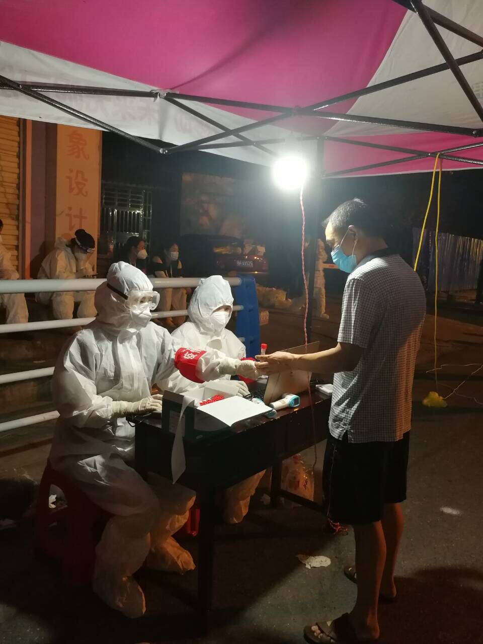 3044永利集团李婵娟老师,付海燕老师和沈瑞敏老师,也都为抗疫做出重要贡献。据了解,就在前几天,李婵娟老师正在青海甘肃一带旅游,看到要求武汉师生尽早返汉的通知后,李婵娟老师就马上改签飞机,当晚就飞回武汉。李婵娟老师在候机时看到社区发布的8月6日招募志愿者的消息,没有过多思量就报名了,积极投入到武昌紫阳路街复兴路社区抗疫志愿者行列中。第二天一大早李婵娟老师就行动起来,按照社区安排,协助医务人员完成核酸样本采集,接着对采集区进行消杀工作。李婵娟老师还说到:‘全民核酸检测是一项艰巨的任务,医务人员在这样恶劣的天气下挥汗如雨,与他们相比,我的付出微不足道,但是我也为自己能尽一份微薄之力而感到安心。李婵娟老师在疫情反弹后第一时间投入到抗疫志愿者行列中,疫情面前,勇担社会责任,为抗疫斗争贡献了自己的一份力量。