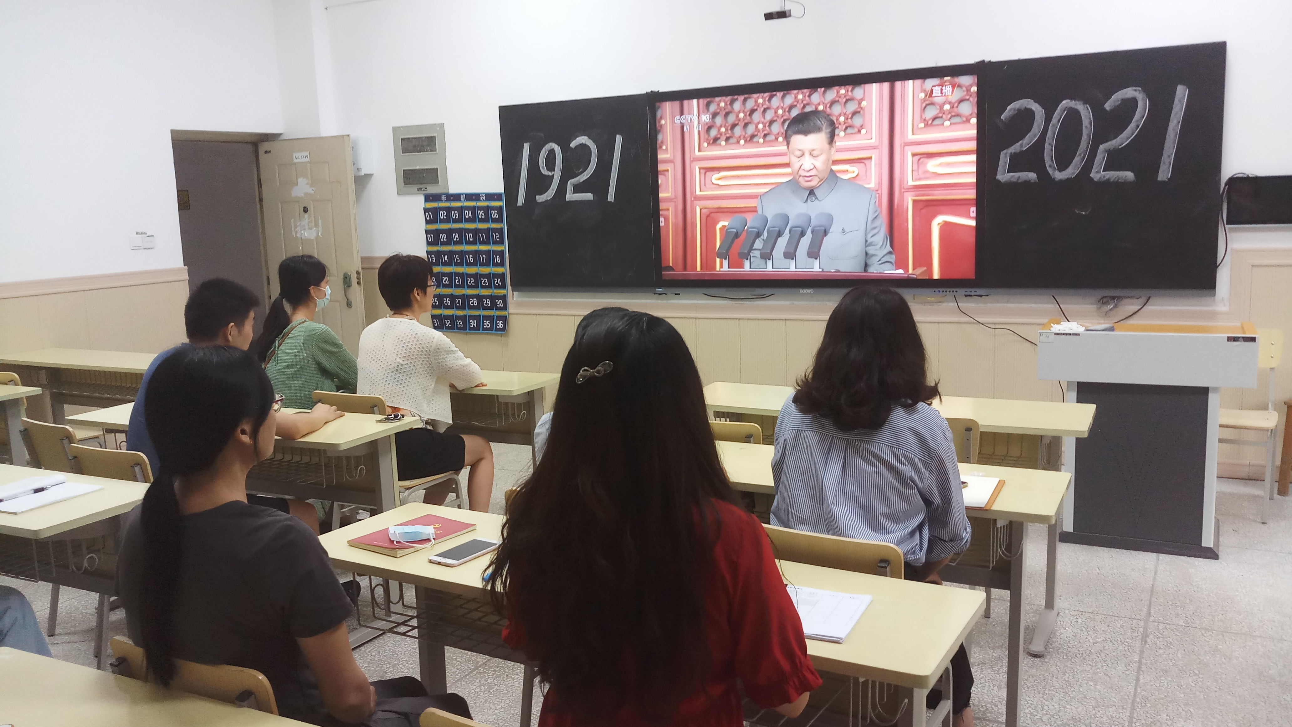 本网讯(通讯员 罗璇) 7月1日,中国共产党百年华诞,食生院教师党支部全体同志在临湖轩A5049集体观看了庆祝中国共产党成立100周年大会,聆听了习近平总书记的重要讲话。