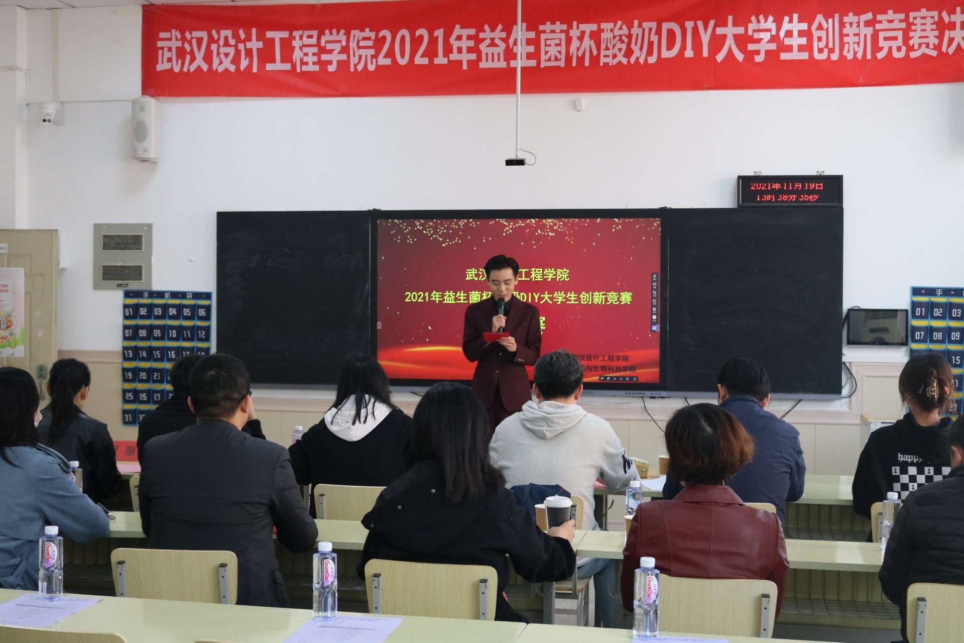 经历前期紧张的准备工作,各参赛队伍在10月29日验收成果,通过计划书和PPT向评委进行产品介绍,阐述本组酸奶制品的工艺和构思,评委根据选手讲述和计划书进行点评提问。