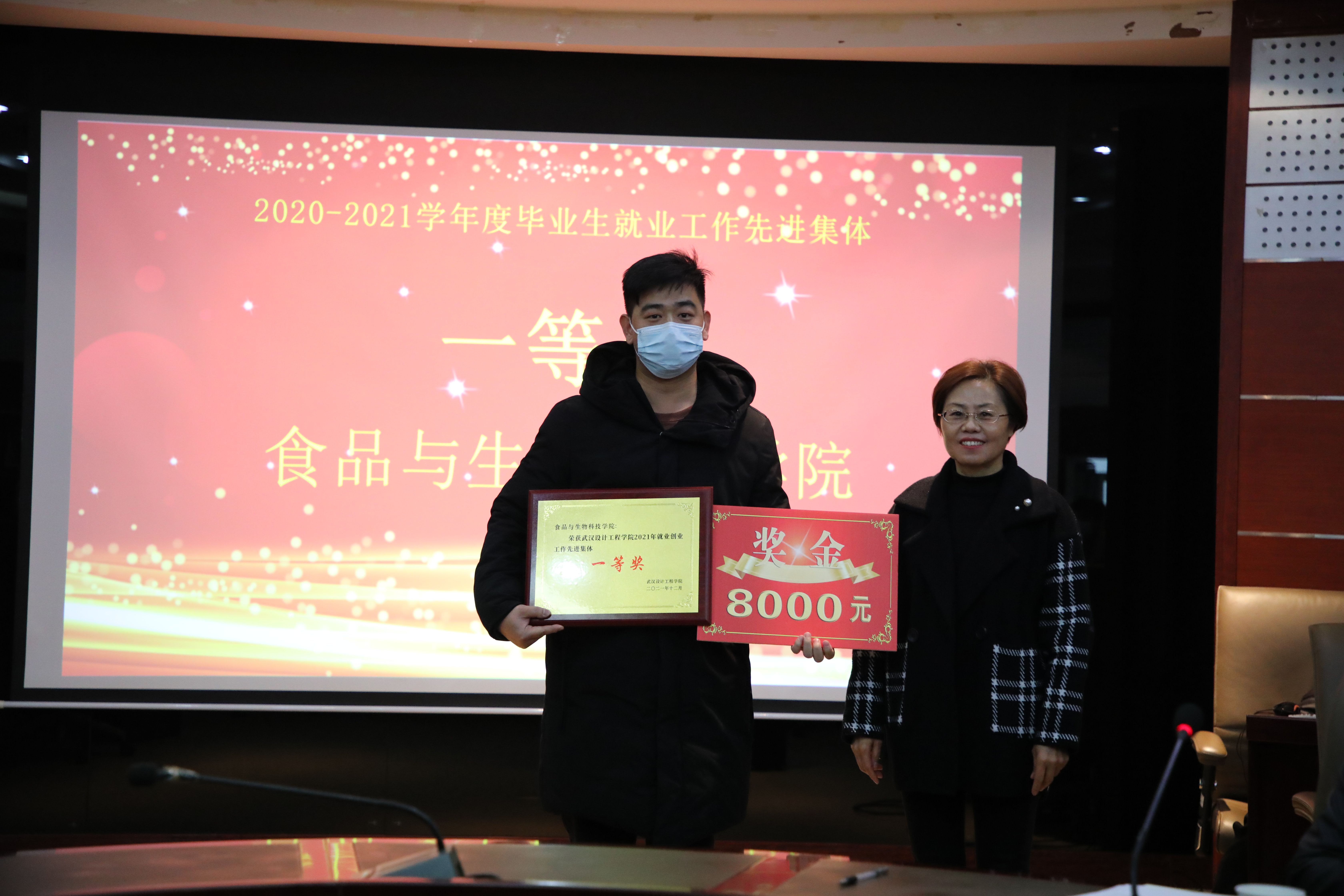 就业工作领导小组组长、党委书记冉春桃给先进集体一等奖颁奖