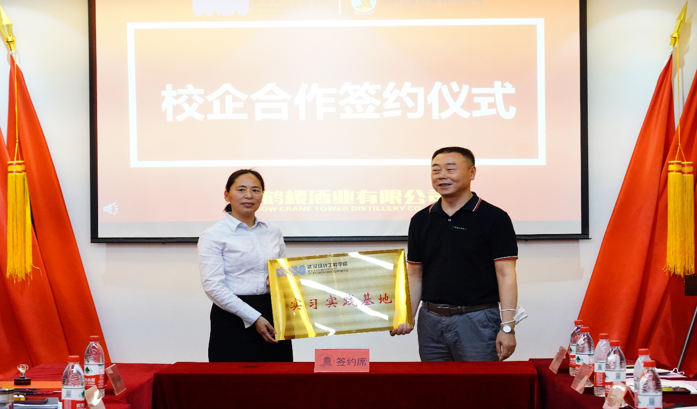 在黄鹤楼酒业有限公司副总经理、总会计师麻玉侠,技术质量中心总监李良,人力资源中心总监张佳等领导和公司员工吴艳红陪同下,龚少平一行参观了黄鹤楼酒文化博物馆、天成坊酿造车间和名人酒窖等地,详细了解了黄鹤楼酒的历史渊源和酿造工艺。随后,校企双方举行了座谈交流会,签订实习基地协议书并举行实习实训基地授牌仪式。