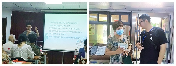 “知·食”互动课堂于上午10点正式开始,首先由社区工作人员向居民发放食品安全宣传折页,紧接着宣讲人朱哲从果蔬安全常识、夏日消毒、剩菜、食物相克、夏季食疗和食品卫生安全等七个要素向社区居民进行食品安全知识的普及。宣讲过程中,居民们认真记录,积极参与问答,课堂氛围活跃。这不仅科普了食品安全知识,还让更多的居民关注食品安全与身体健康,加深其对食品科学知识的理解。